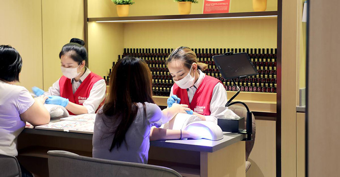 ถ้าใครที่ได้เคยไปที่ร้าน ไม่มีใครไม่พูดถึงการบริการขั้นเทพของร้านนี้ ที่เก็บรายละเอียดความต้องการของลูกค้า ได้เป็นอย่างดี เรียกว่าเป็นจุดแข็งหลักๆ ของร้านเลยก็ว่าได้ ที่บอกว่าละเอียดนั้น ละเอียดอย่างไร เริ่มตั้งแต่การรอคิวของลูกค้าเลยค่ะ โซนนั่งรอก็จะมีบริการเก้าอี้นวดไฟฟ้า บริการทำเล็บ อัดรูป หรือมาเป็นครอบครัวมีลูก ก็จะมีห้องสำหรับเด็กๆด้วย