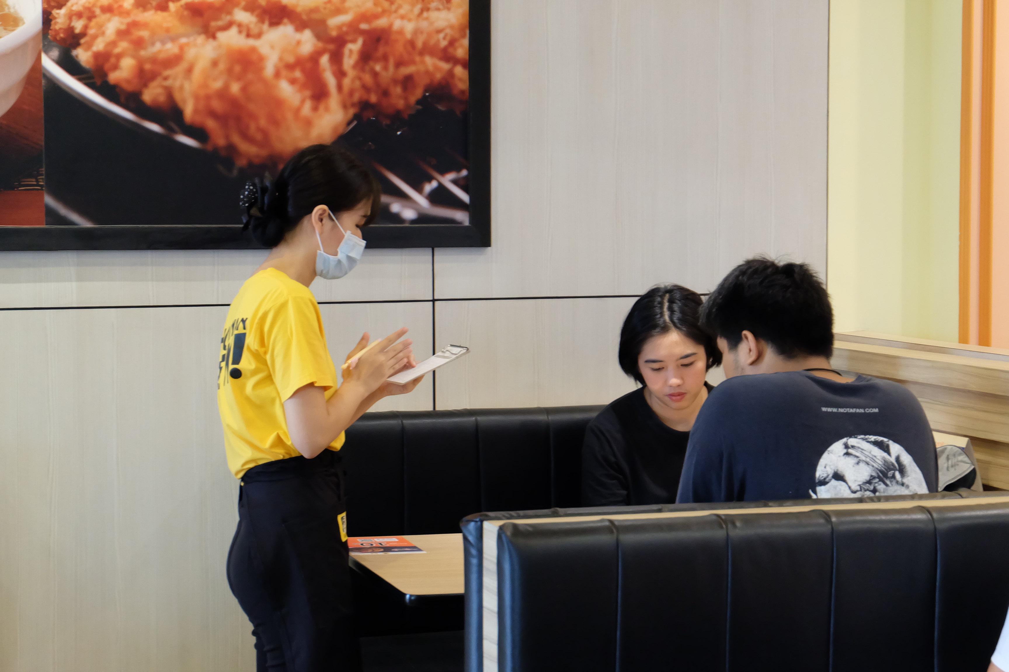 - ต่อมาพนักงานจะนำเมนูมาให้ ซึ่งเมนูทุกแผ่นจะถูกทำความสะอาด เช็ดด้วยน้ำยาฆ่าเชื้อทุก 2 ชั่วโมง เพราะเมนูเป็นส่วนหนึ่งที่ลูกค้าต้องสัมผัส เสี่ยงต่อการแพร่เชื้อได้