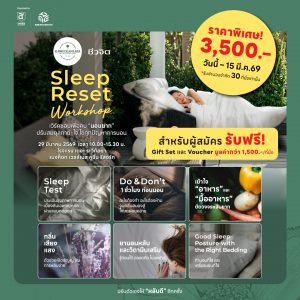 มา Reset ระบบการนอนใหม่ให้ยั่งยืนใน Sleep Reset Workshop ที่จะเปลี่ยนคืนที่วุ่นวาย ให้เป็นการพักผ่อนที่แท้จริง พร้อมคำแนะนำจากผู้เชี่ยวชาญครบทุกมิติ