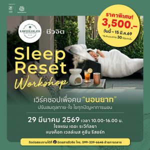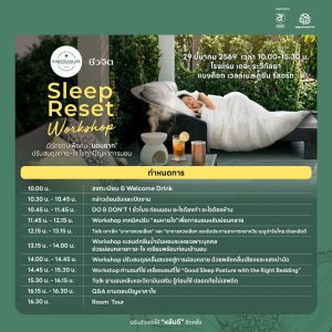 มา Reset ระบบการนอนใหม่ให้ยั่งยืนใน Sleep Reset Workshop ที่จะเปลี่ยนคืนที่วุ่นวาย ให้เป็นการพักผ่อนที่แท้จริง พร้อมคำแนะนำจากผู้เชี่ยวชาญครบทุกมิติ